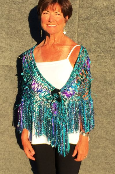 SHAWL COLORS: Blue, Turquoise, Teal, Green, Silver.